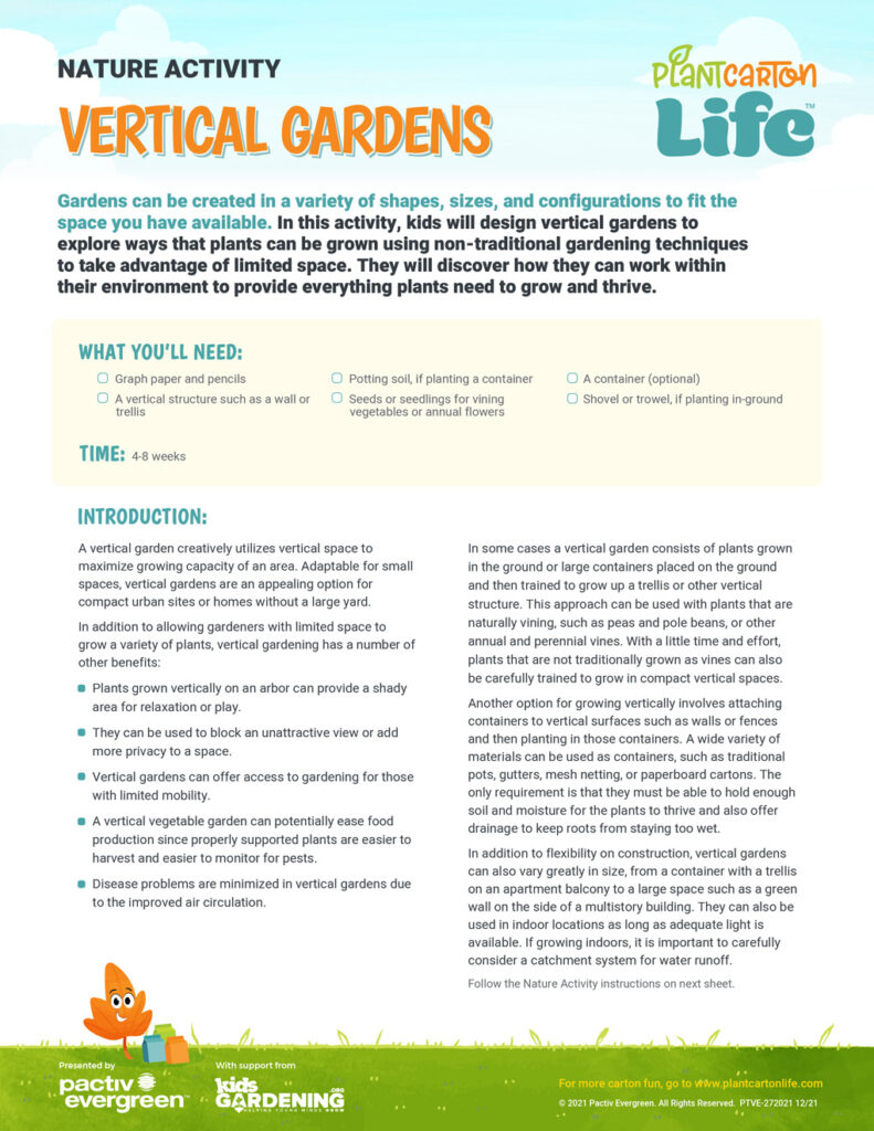 The following activities help students repurpose cartons into gardening and other nature projects.